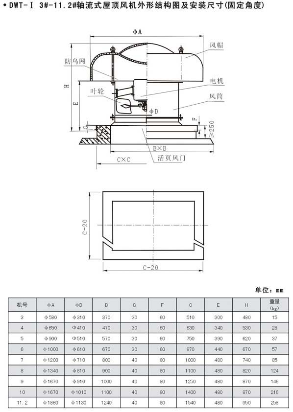 产品名称:DWT-II(III)型离心式屋顶风机